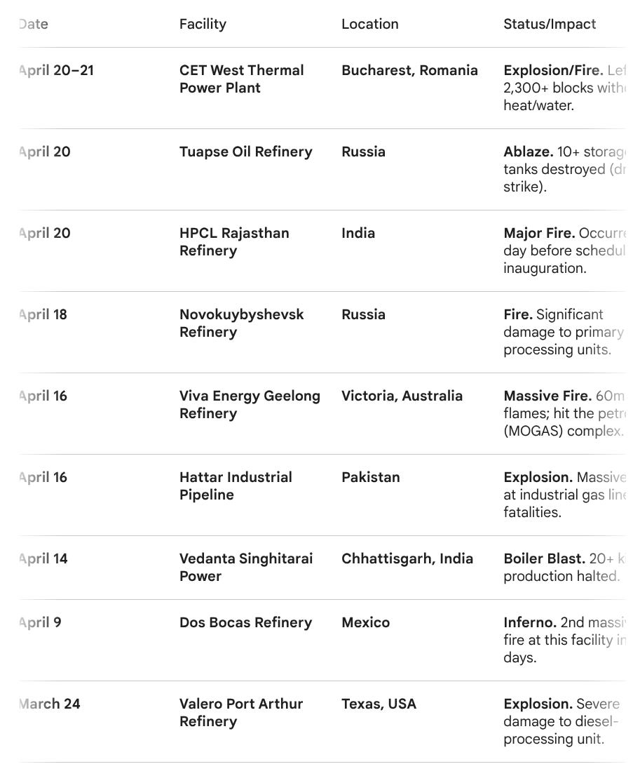 Cumulatively this might account for somewhere between 1.7 million barrels per day or 1.5% - 2% of global refining capacity taken offline in the last 30 days.