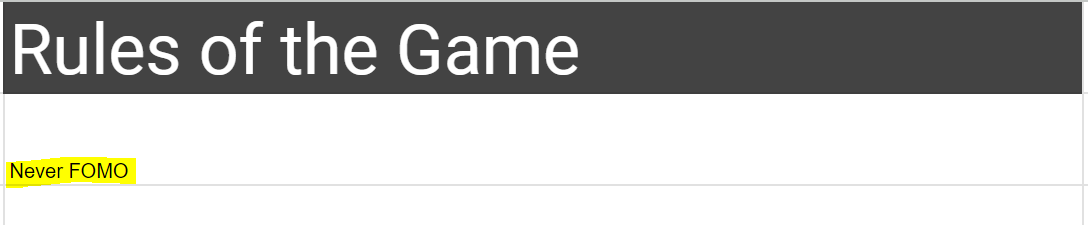 In fact I am so aware of FOMO that it is the number one item on my list of rules for investing that I check before making a purchase. Never FOMO.