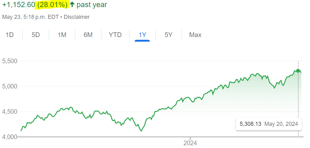 Looksee - 28% in 1 year. Your lizard brain sees that and immediately projects the next year at 28% and the next year.