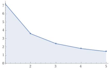 When you plot return rates of 10%, 20%, 30%, 40%, 50% and their respective time to double your money using the rule of 72 - you get the chart below.