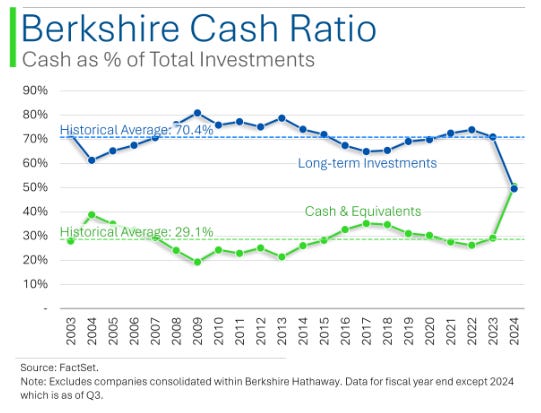 This next chart shows renowned investor Warren Buffet’s cash allocation within Berkshire Hathaway.