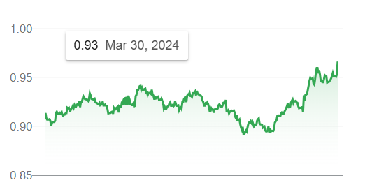 Inspecting the idea of the Firework, here are some leading currencies for the last year versus the USD.